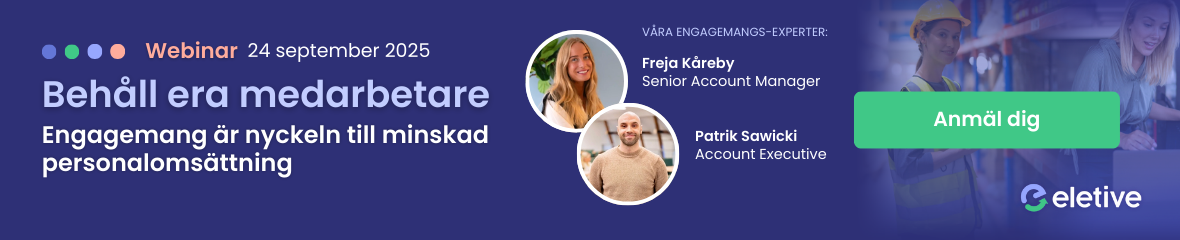 För att hjälpa organisationer att ta nästa steg arrangerar Eletive ett kostnadsfritt webinar den 24 september 2025, 13.30. Där delar våra experter Freja Kåreby (Senior Account Manager) och Patrik Sawicki (Account Executive) med sig av insikter, verktyg och verkliga exempel på vad som gör skillnad i praktiken.