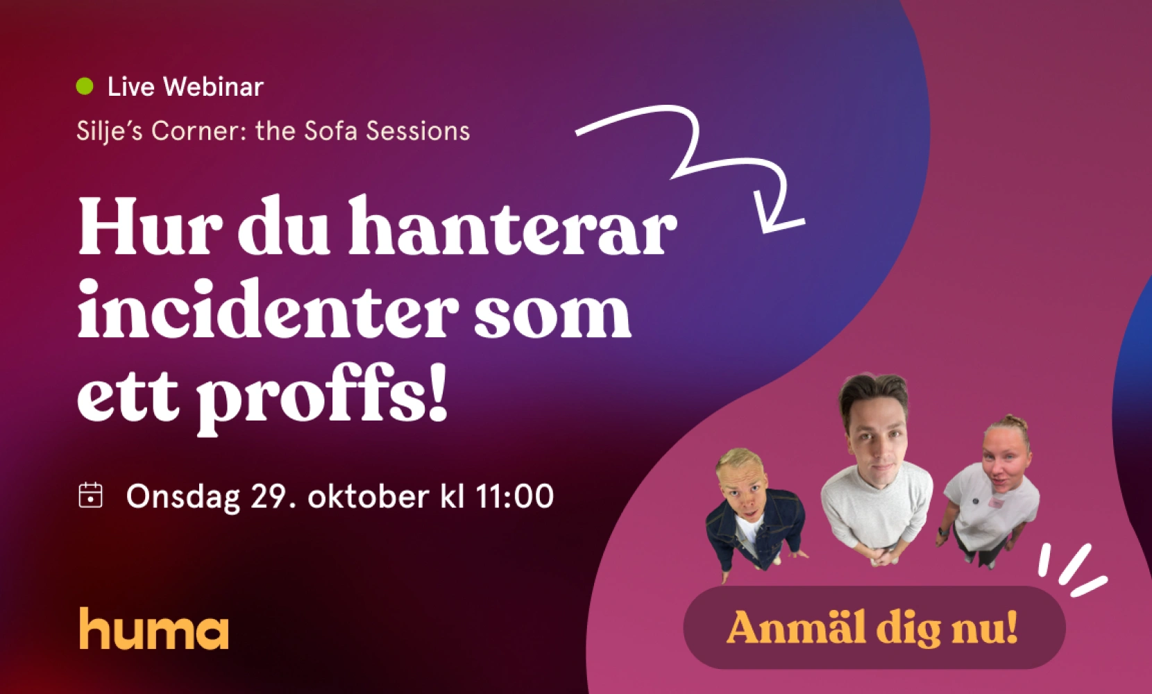 Silje’s Corner är Humas egen webinarserie där Silje Sommerstad Johansen bjuder in kollegor och experter till avslappnade samtal om aktuella HR-utmaningar, smartare arbetssätt och hur teknik kan stärka både kultur och compliance. Nu är det äntligen dags för avsnitt fyra – där Silje tar sig an konsten att hantera misstag på ett sätt som stärker både teamet och kulturen.